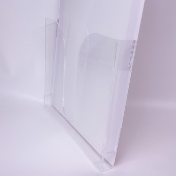 Organiza y presenta documentos, avisos o instructivos con este bolsillo acrílico diseñado para pegar en muros o vidrios. Su formato permite insertar hojas tamaño carta de forma rápida y mantenerlas visibles y protegidas. Puedes pedirlo con fondo blanco para muros y sin fondo blanco para pegar en vidrios.