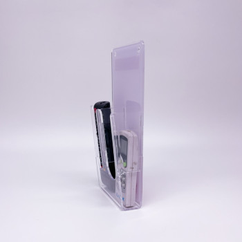 Mantén los controles remotos siempre visibles y al alcance con este soporte de acrílico, ideal para pegar en muros, muebles o costados de equipos. Su diseño simple y funcional ayuda a mantener el orden y evitar extravíos.