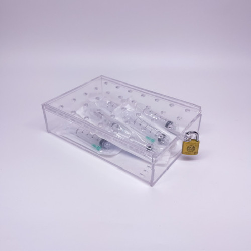 Diseñado para proteger y organizar insumos delicados como jeringas cargadas con medicamentos de alto riesgo, este porta jeringas de seguridad es ideal para pabellones, unidades críticas y servicios donde se requiere un manejo controlado. Su diseño permite fijar la caja a una superficie y agregar un candado.