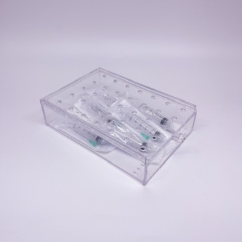 • Compartimento único para organizar jeringas de distintos volúmenes.