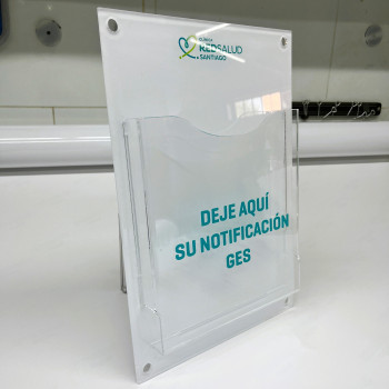 Diseñado para organizar y tener a la vista fichas clínicas, carpetas o documentos importantes, este bolsillo acrílico es ideal para centros de salud, oficinas o laboratorios. Su formato resistente permite fijarlo fácilmente a muros, puertas o superficies junto a embellecedores.